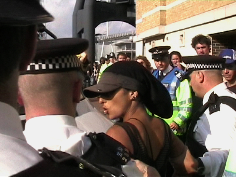 Police arrest protestors on protests against the DSEi arms fair, London, UK. 14/09/2005.