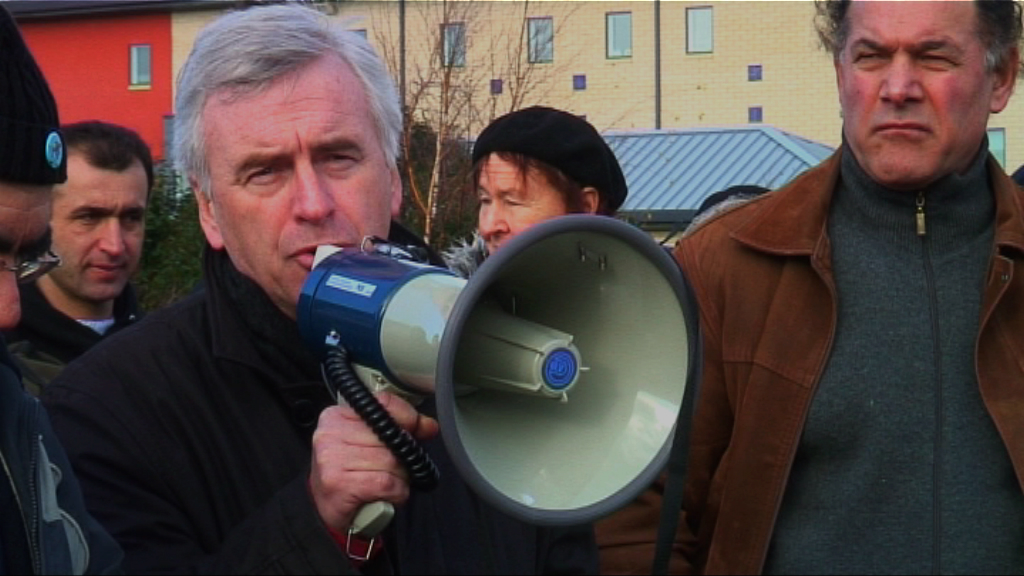 John McDonnell MP speaking at a demonstration outside Harmondsworth Immigration Detention Centre, London, UK. 10/02/2007.