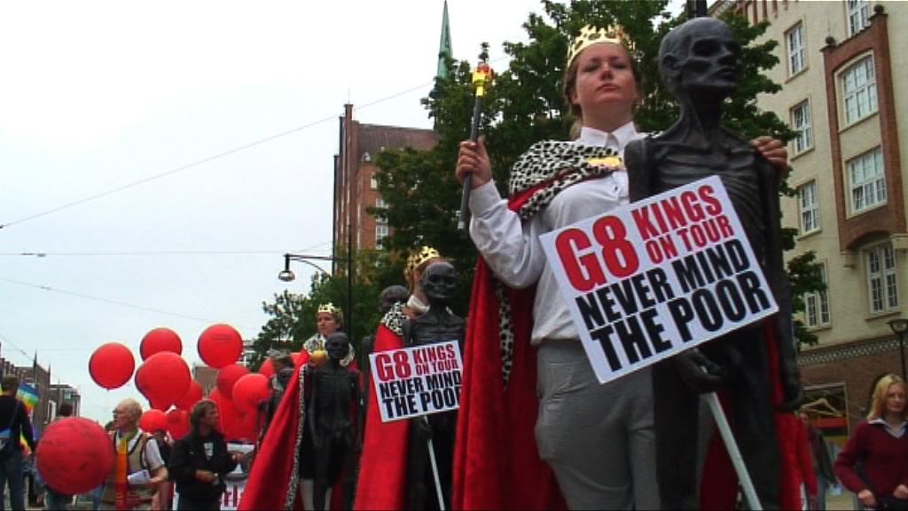 Tens of thousands of people march on the No G8 protest, opposing the G8 summit, Rostock, Germany. 02/06/2007.