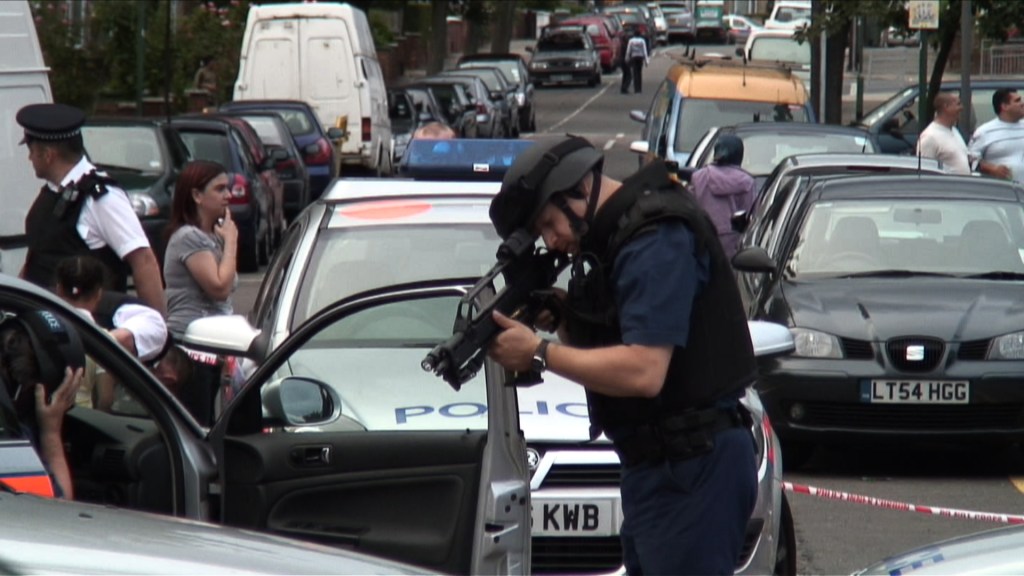 Armed police respond to an attempted shooting of two undercover police officers, Neasden, London. 28/07/2007.