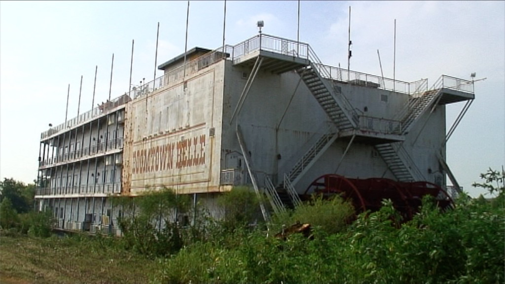 The Boomtown Belle Mississippi paddle-wheel steamboat casino lies derelict in a scrapyard, Louisiana, USA. 07/08/2010.