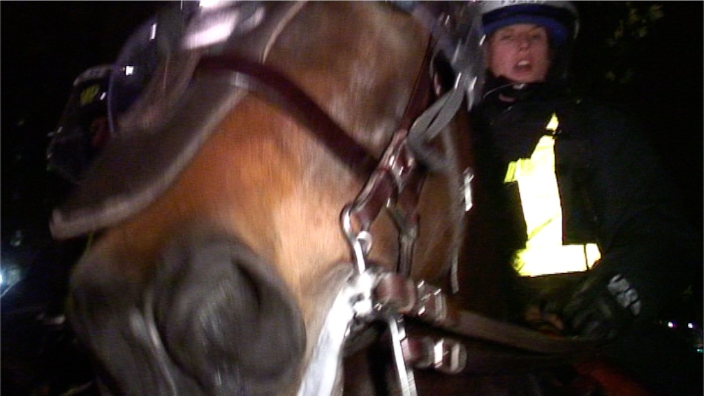 Riot police on horses use batons against students on the #DayX demonstration, protesting huge increases to university tuition fees, London, UK. 24/11/2010.