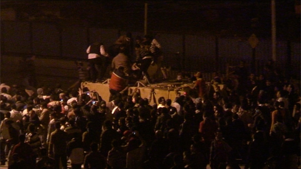 CAIRO, EGYPT – JANUARY 28: Military armoured personnel vehicles breach a burning barricade trying to reach Tahrir Square on 28 January 2011 in Cairo, Egypt. One APC is disabled and is attacked by protestors.