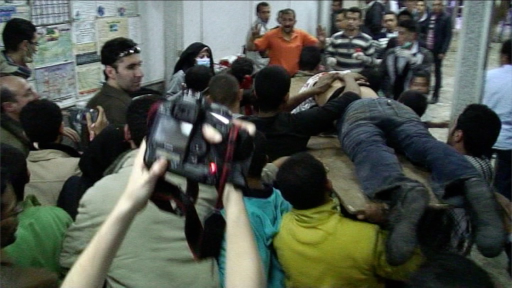CAIRO, EGYPT – JANUARY 29: Protestors carry the injured and dead from the frontline at the Interior Ministry where security services have opened fire with live rounds, to a makeshift hospital in a nearby mosque where doctors try to give medical assistance on January 29, 2011 in Cairo, Egypt.