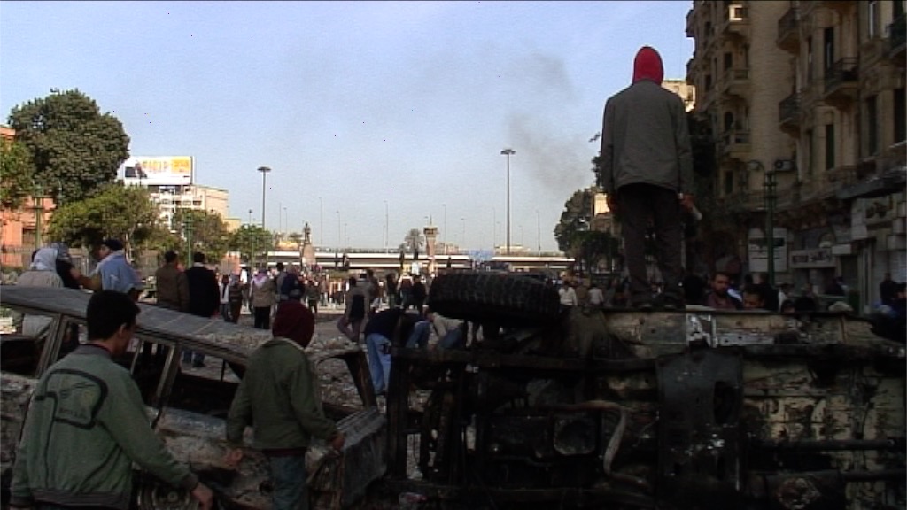 CAIRO, EGYPT – FEBRUARY 03: Burned out vehicles form barricades and rocks are strewn in the street in the aftermath of a night of fighting between pro-democracy protestors and supporters of President Mubarak on February 03, 2011 in Cairo, Egypt.