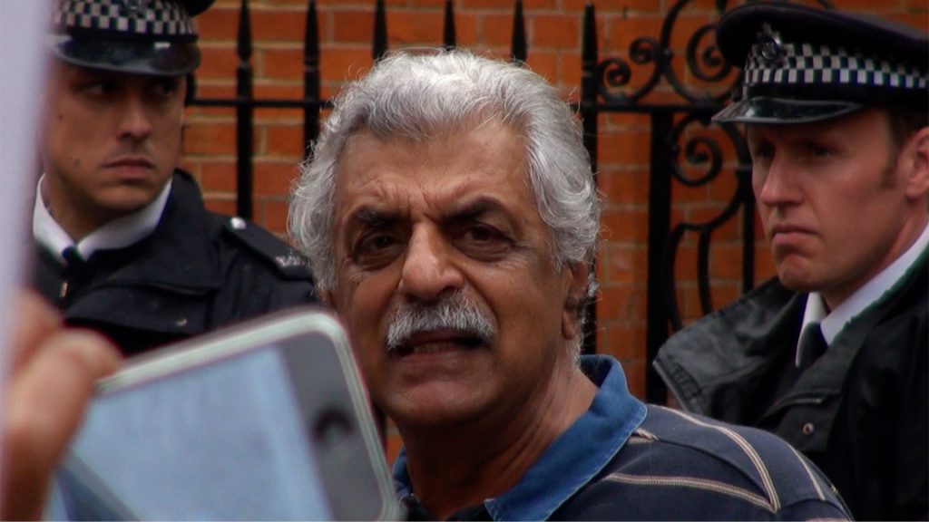 Political activist Tariq Ali speaks at a protest in support of Wikileaks founder Julian Assange outside the Ecuador embassy, London, UK. 19/08/2012.