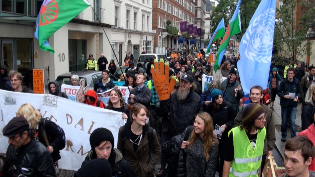 Protestors march on the offices of Communities and Local Government Secretary Eric Pickles to evict him on the one year anniversary of the Dale Farm Irish Traveller site eviction, London, UK. 19/10/2012.