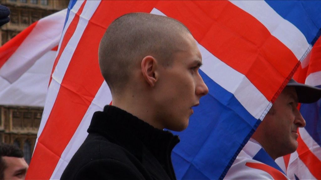 Far right groups including the English Defence League, National Front, British National Party, march on a protest in support the Union flag to be flown over Belfast town hall, London, UK. 16/02/2013.