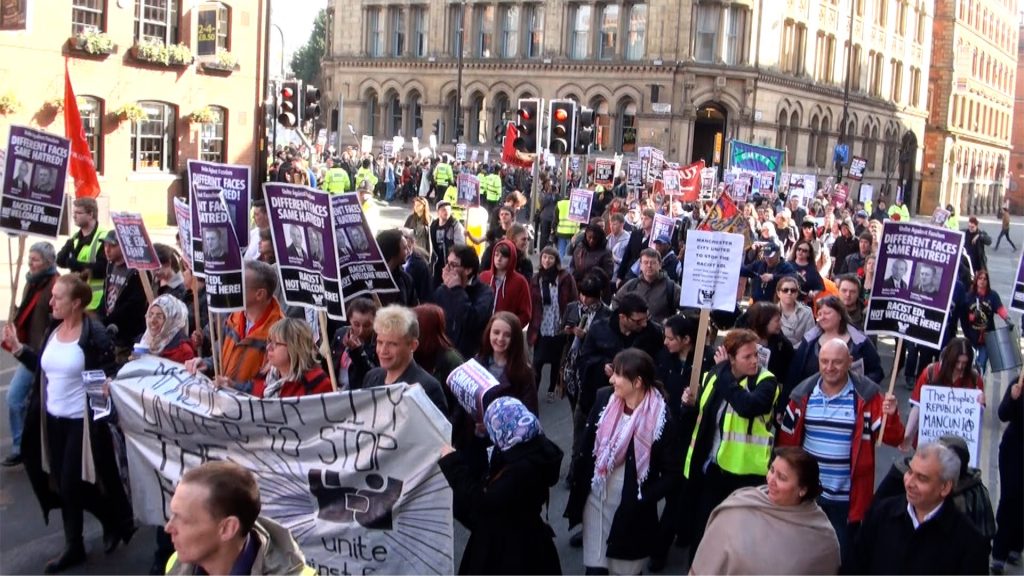 Thousands of protestors march to oppose a far right English Defence League (EDL) demonstration, Manchester, UK. 02/03/2013.