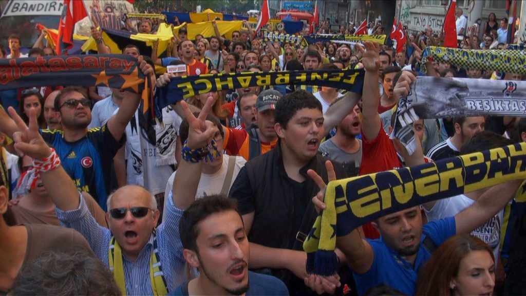 Thousands of rival Turkish football fans unite and join anti-government protestors in Taksim Square, Istanbul, Turkey. 08/06/2013.