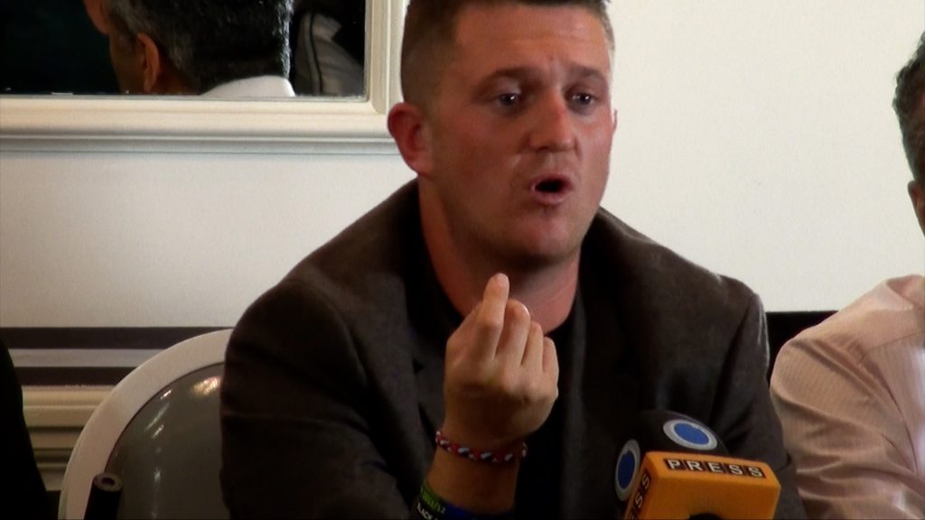 Former English Defence League (EDL) leader Stephen Yaxley Lennon (Tommy Robinson) denies there were any Seig Heil Nazi salutes on the protests and accuses media manipulation for the existence of photographs, London, UK. 08/10/2013.