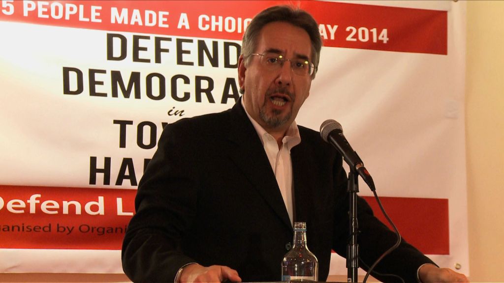 Counterfire founder John Rees speaks out in support of Mayor Lutfur Rahman at the Defend Democracy in Tower Hamlets event, London, UK. 21/11/2014.