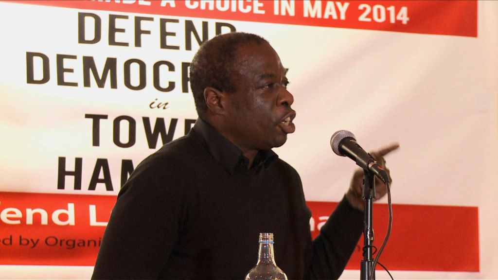 Stand Up to Racism Joint Secretary Weyman Bennett speaks out in support of Mayor Lutfur Rahman at the Defend Democracy in Tower Hamlets event, London, UK. 21/11/2014.