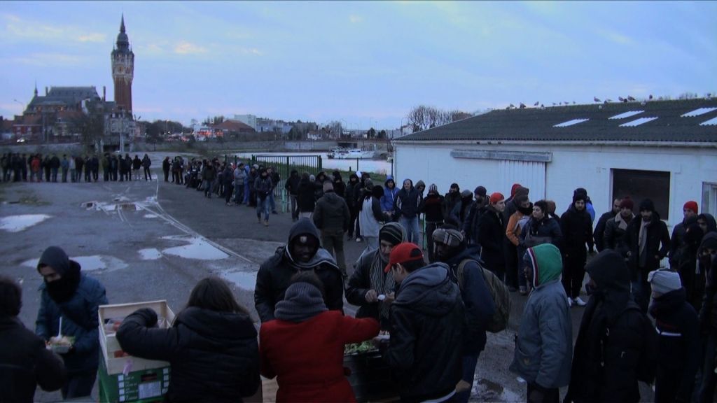 Refugees queue for the last Salam food distribution after local government ban all assistance to refugees within the city limits, Calais, France. 14/01/2015.