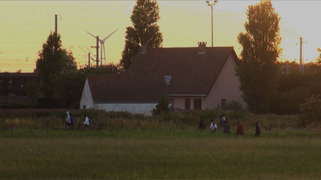 Refugees walk for miles across surrounding fields in attempts to breach the outer fences at the Eurostar Terminal, Coquelles, France. 02/08/2015.