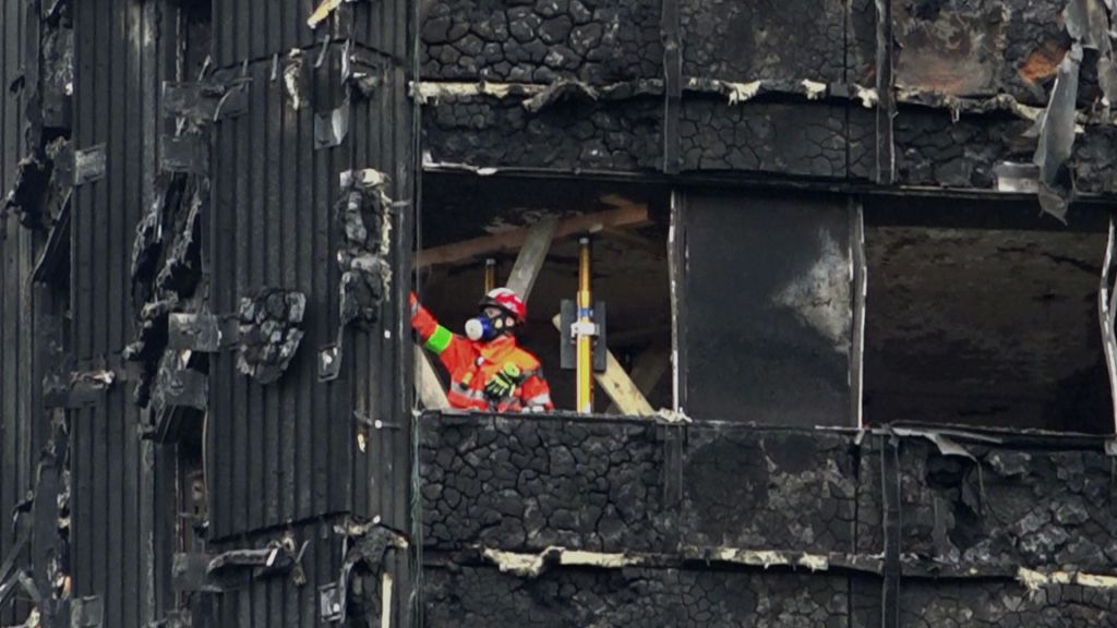 Firefighters investigate the aftermath of Grenfell tower block disaster, London, UK. 22/06/2017.