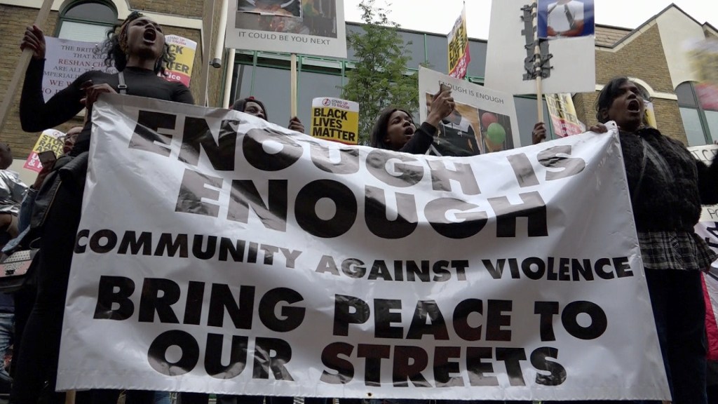 Residents hold a vigil at Stoke Newington police station and march through Hackney in protest of the death of Rashan Charles, who died after police contact. London UK. 24/07/2017.