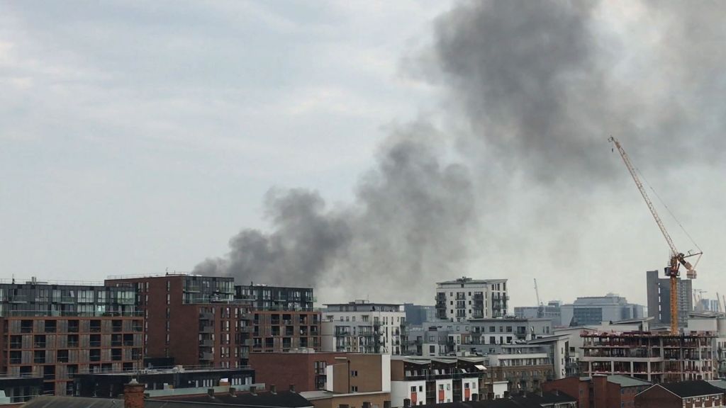 Multiple fire crews using breathing apparatus tackle at huge blaze at a scrapyard near Poplar, London, UK. 21/04/2018.