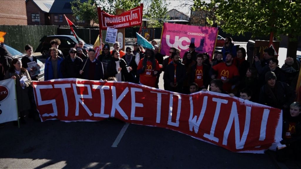 Workers from five UK McDonalds restaurants went on strike on International Workers Day, to call for a minimum £10 per hour living wage, an end to zero hour contracts and union recognition.
