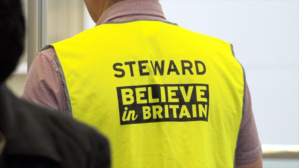 One man dons an “Antifa aRe Fascists” T-Shirt and most white, middle-middle-class, elders people dominate the audience at the UKIP party conference, Birmingham, UK. 22/09/2018.
