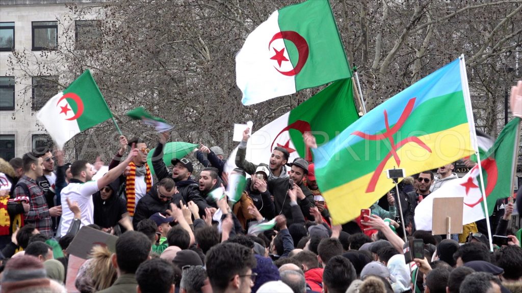 Hundreds of Algerians protest in Trafalgar Square against President Abdelaziz Bouteflika standing for a fifth term, London, UK. 09/03/2019.