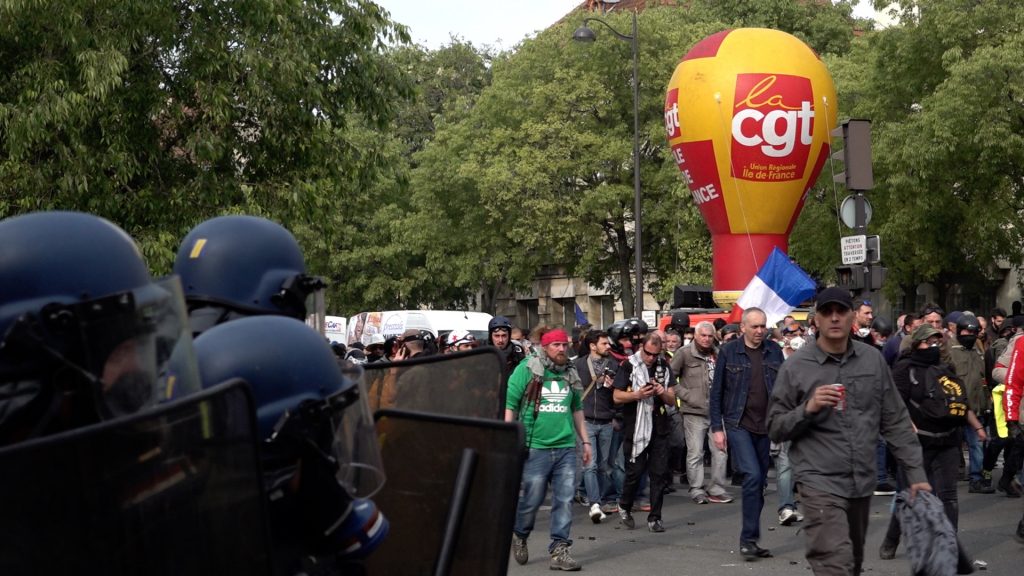 Riot police gather and protestors march on the May Day protest, Paris, France. 01/05/2019.