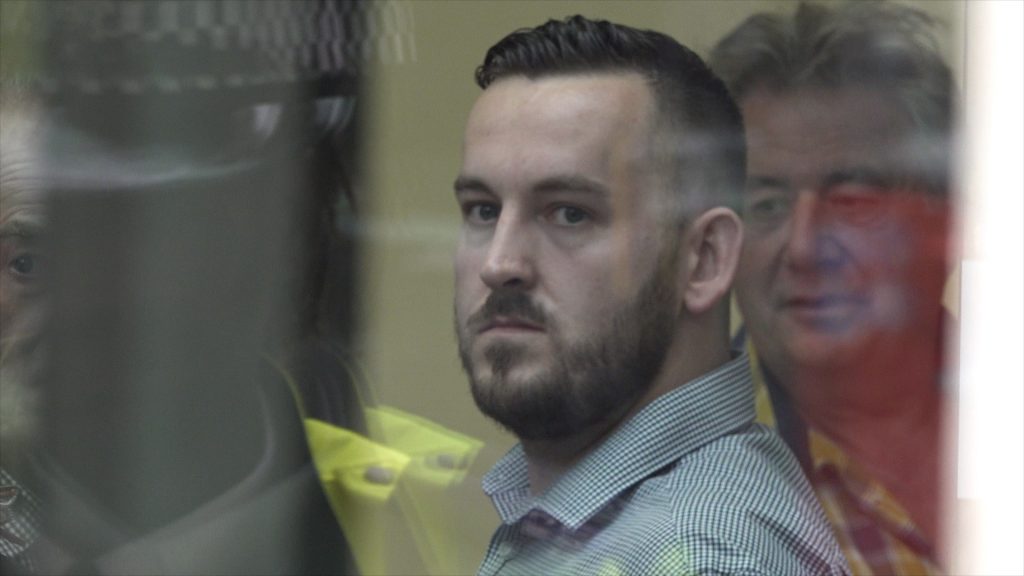 Far Right Yellow Vest UK activist James Goddard enters Westminster Magistrates Court to face three charges of harassment without violence in relation to an incident outside parliament involving Anna Soubry MP and a police officer, London, UK. 19/07/2019.