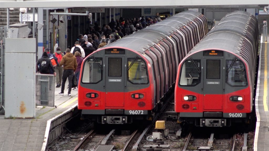 Worrying scenes as social distancing is impossible to maintain on packed Underground trains arriving at Stratford station, as large amounts of people disembark during evening rush hour the first day after the UK government relaxed Coronavirus lockdown restrictions, encouraging a return to work but urged people to avoid public transport, London, UK. 14/05/2020.